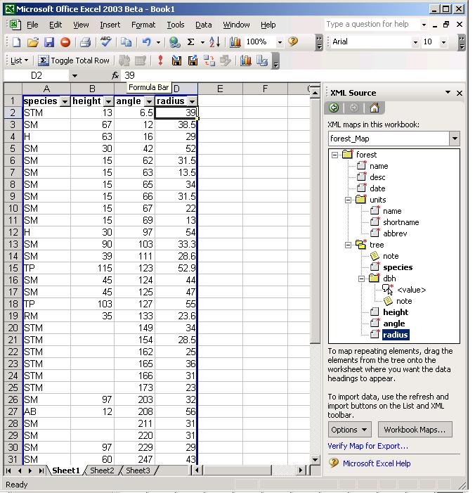 The list with data from Smith Woods.