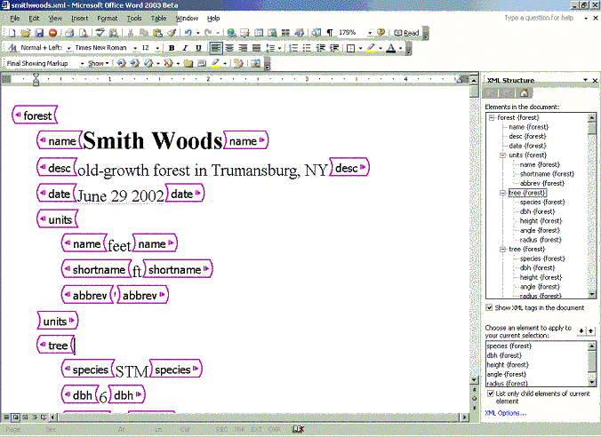An XML document opened in Word.